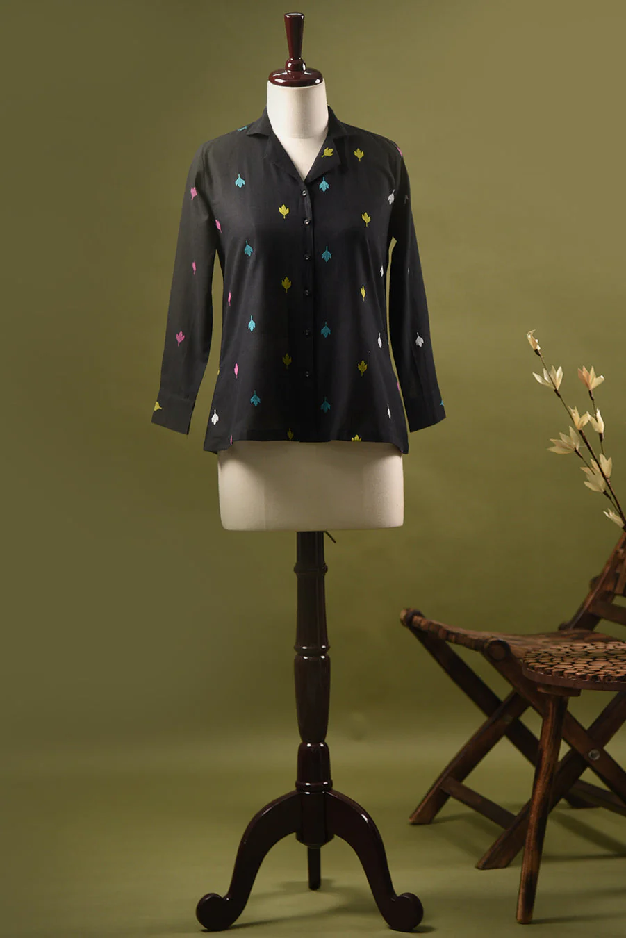 Introducing the must-have staple from Paulsons: the Black Pure Cotton Woven Ready-To-Wear Shirt.