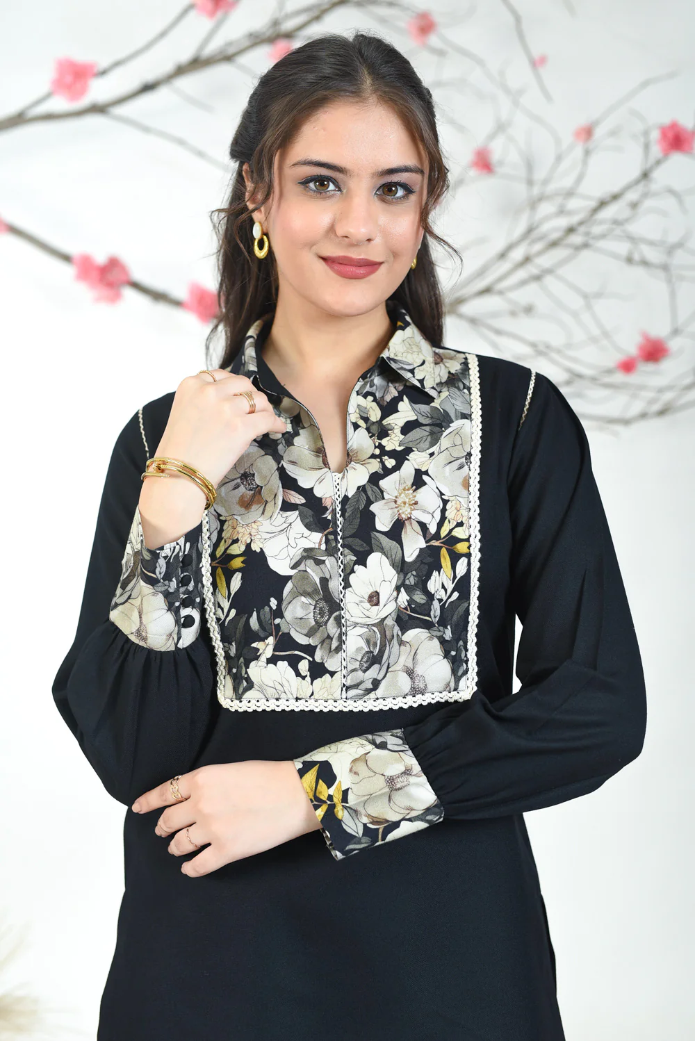 This Black Winter Wear Wool Spun Blend Co-ord Set combines refined craftsmanship with contemporary elegance.