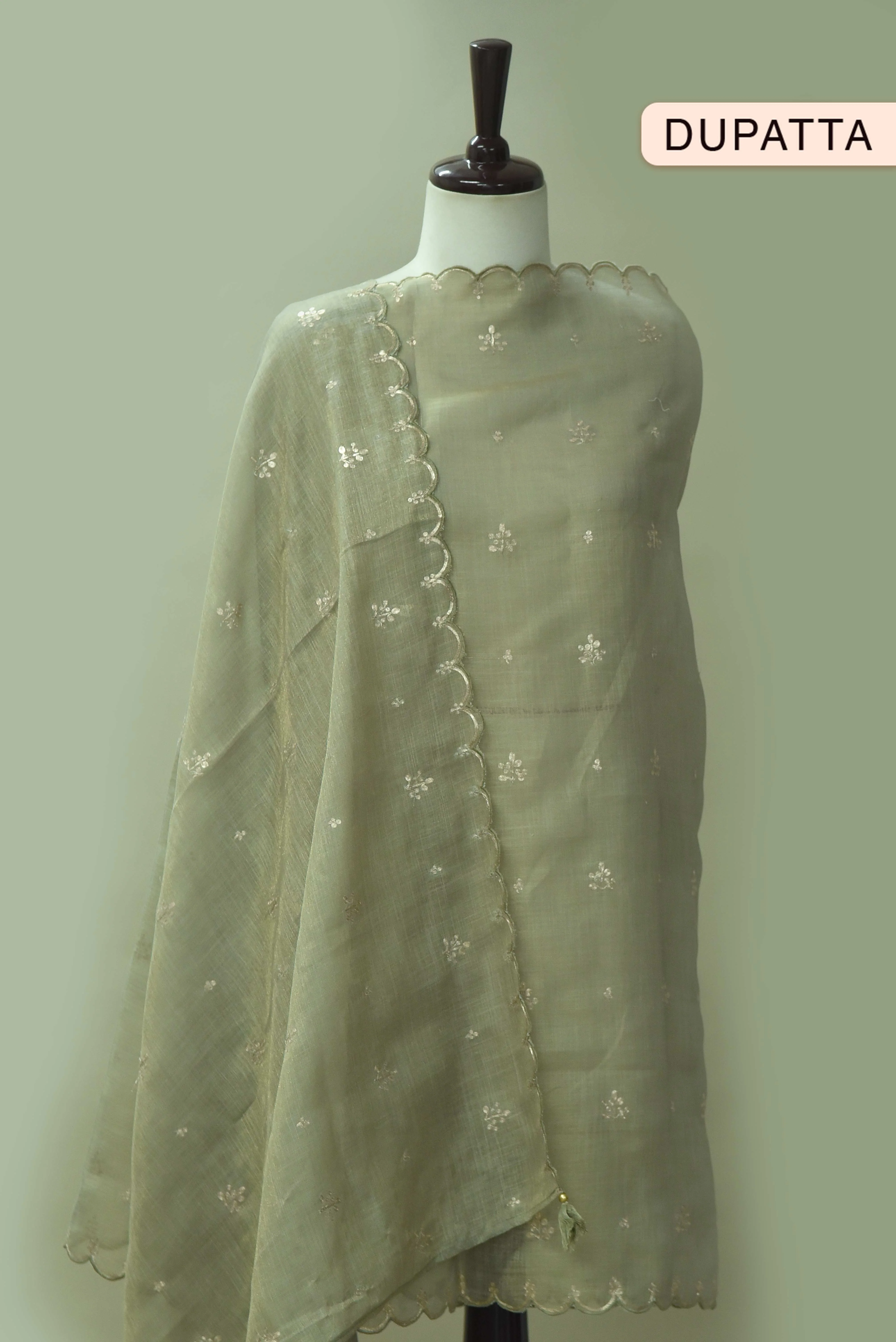 Green Linen Zari Embroidered Unstitched Suit Fabric Set with Linen Zari Embroidered Dupatta