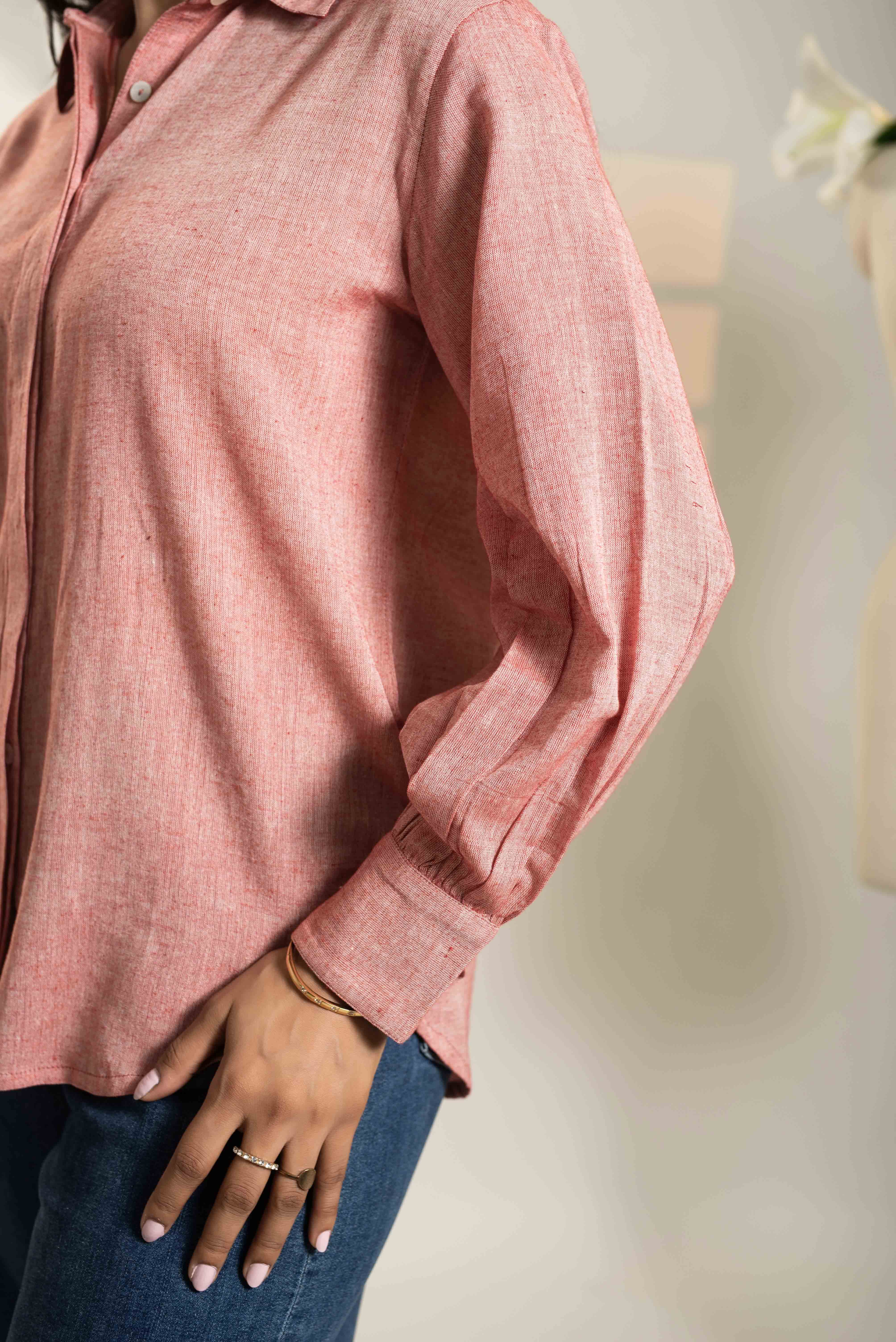 Deep Pink Chambray Pure Handloom Cotton Shirt – Relaxed Fit