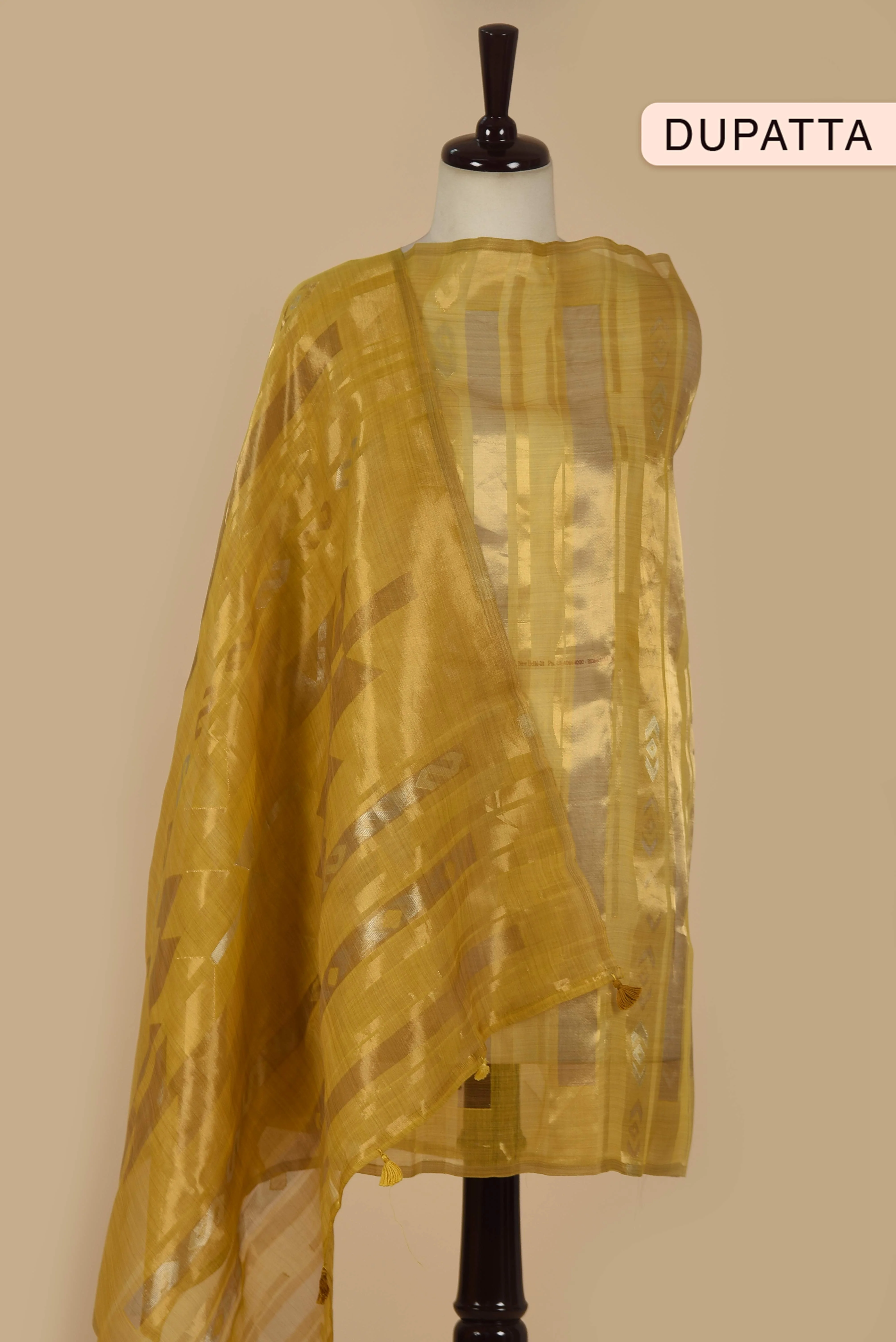 - This Mustard Chanderi unstitched suit fabric set combines elegant woven craftsmanship with intricate Kantha embroidery, complemented by a matching Chanderi woven dupatta.
