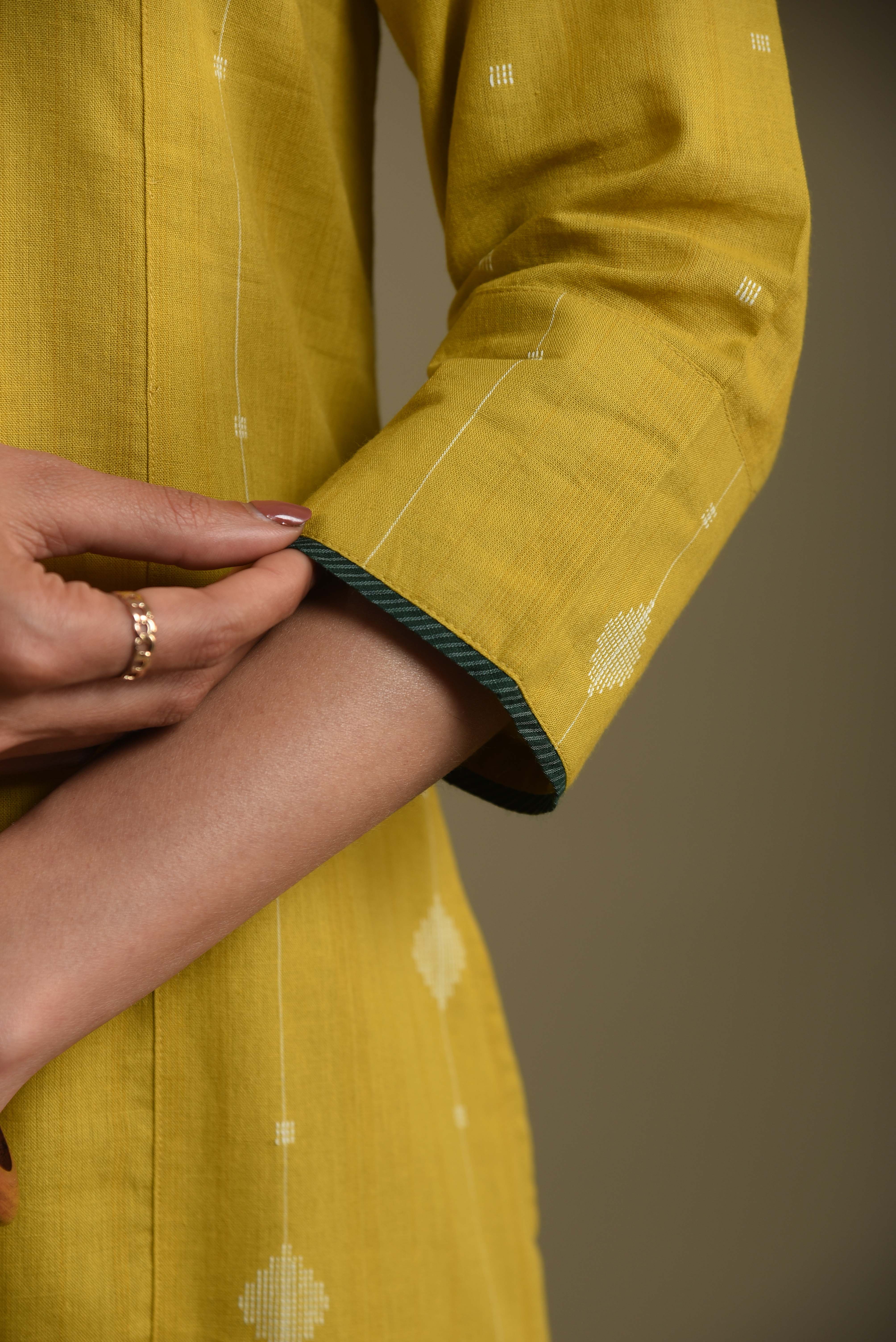 Experience unmatched comfort and effortless style with our Mustard Pure Cotton Woven Kurta Set. - Crafted from the softest pure cotton, this set combines breathable fabric with expert tailoring for a fit that feels as good as it looks.