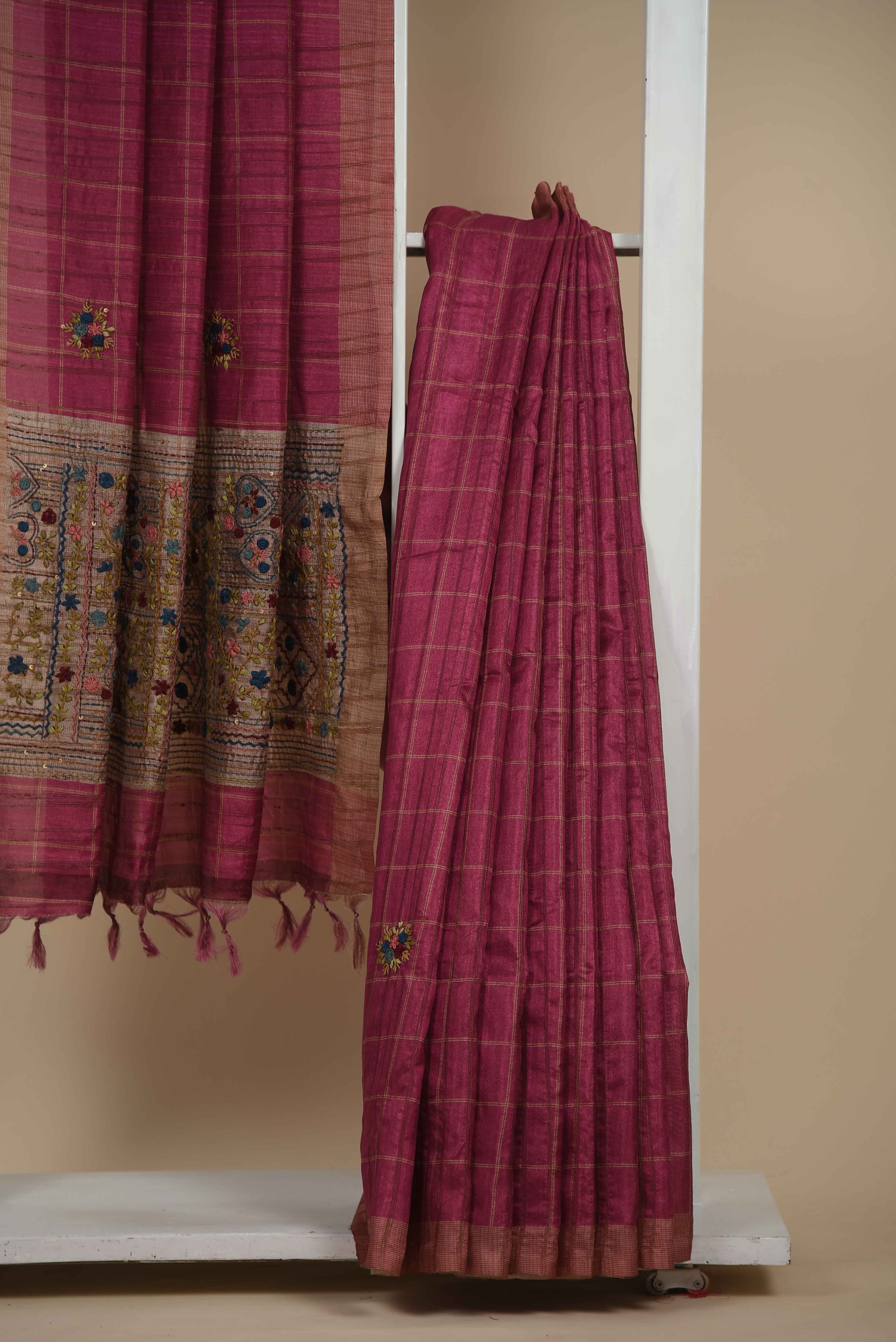The lightweight cotton silk fabric ensures a graceful drape, while delicate hand embroidery adds refined texture and artistic detail.