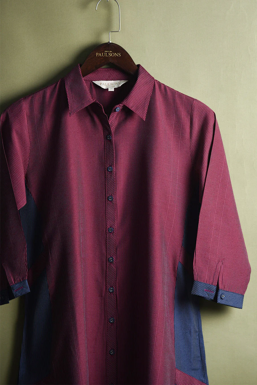 Wine and Blue Cotton Silk Blend Woven Ready-To-Wear A-line Kurta Set With Cullottes